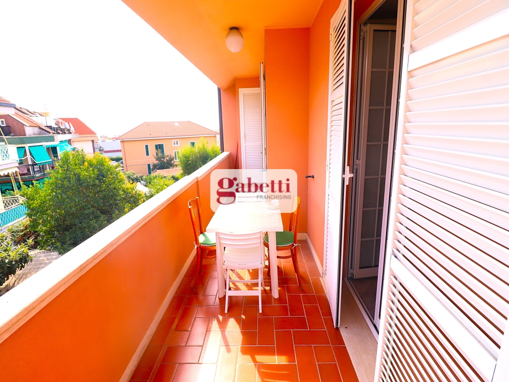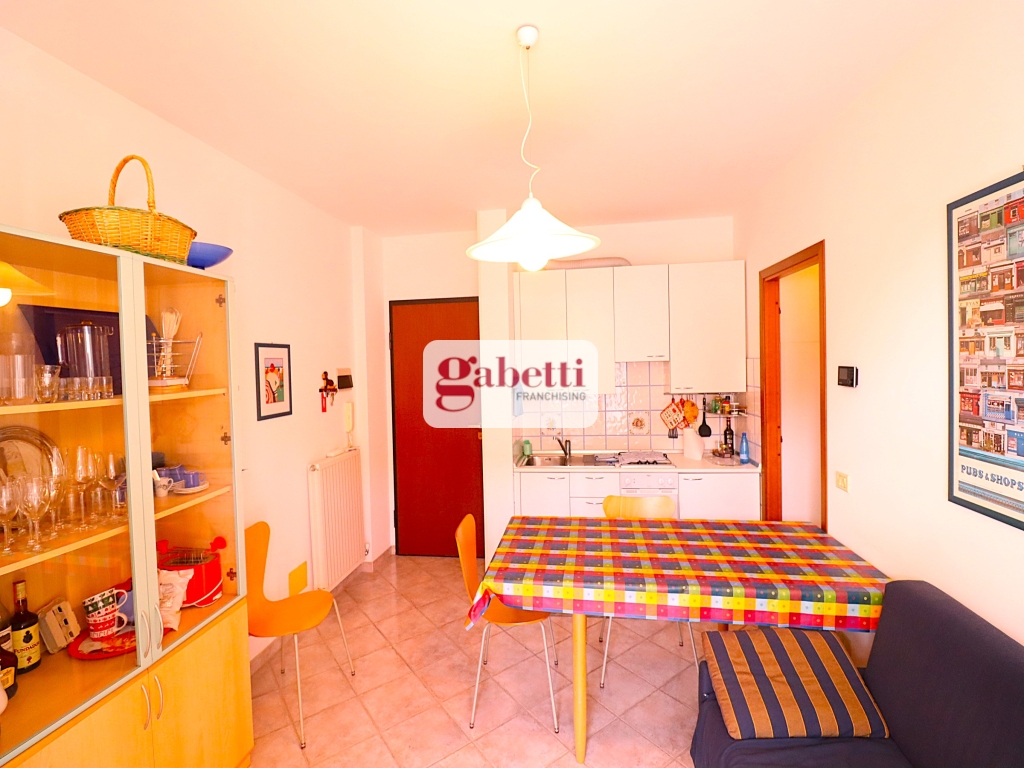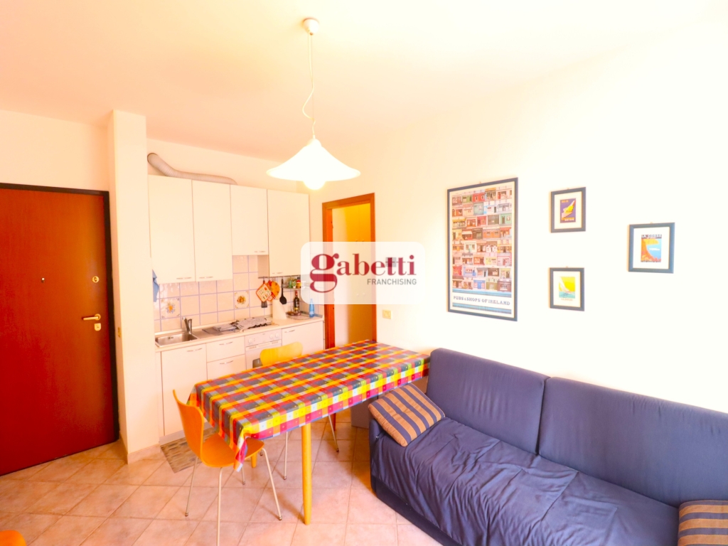 Alloggio di qualità situato in complesso residenziale ricercato, raffinato e curato, sempre apprezzato dalla clientela per la sua comodità al mare, composto da: soggiorno con cucina living, camera matrimoniale, antibagno/bagno finestrato con vasca/doccia, terrazzo.