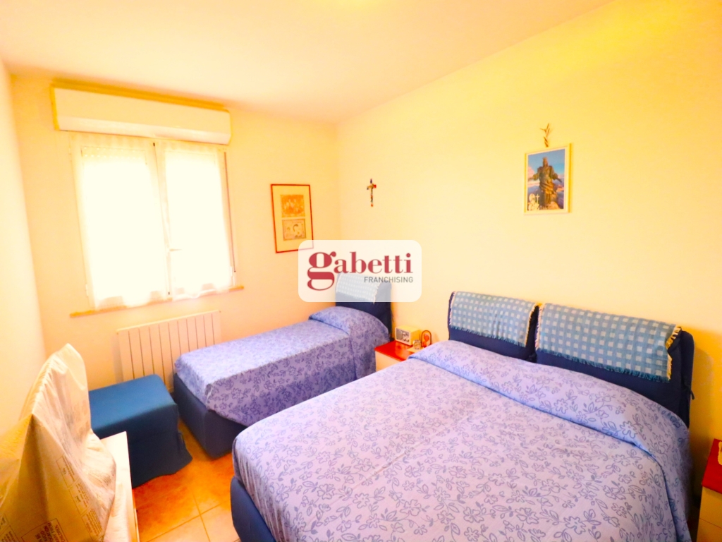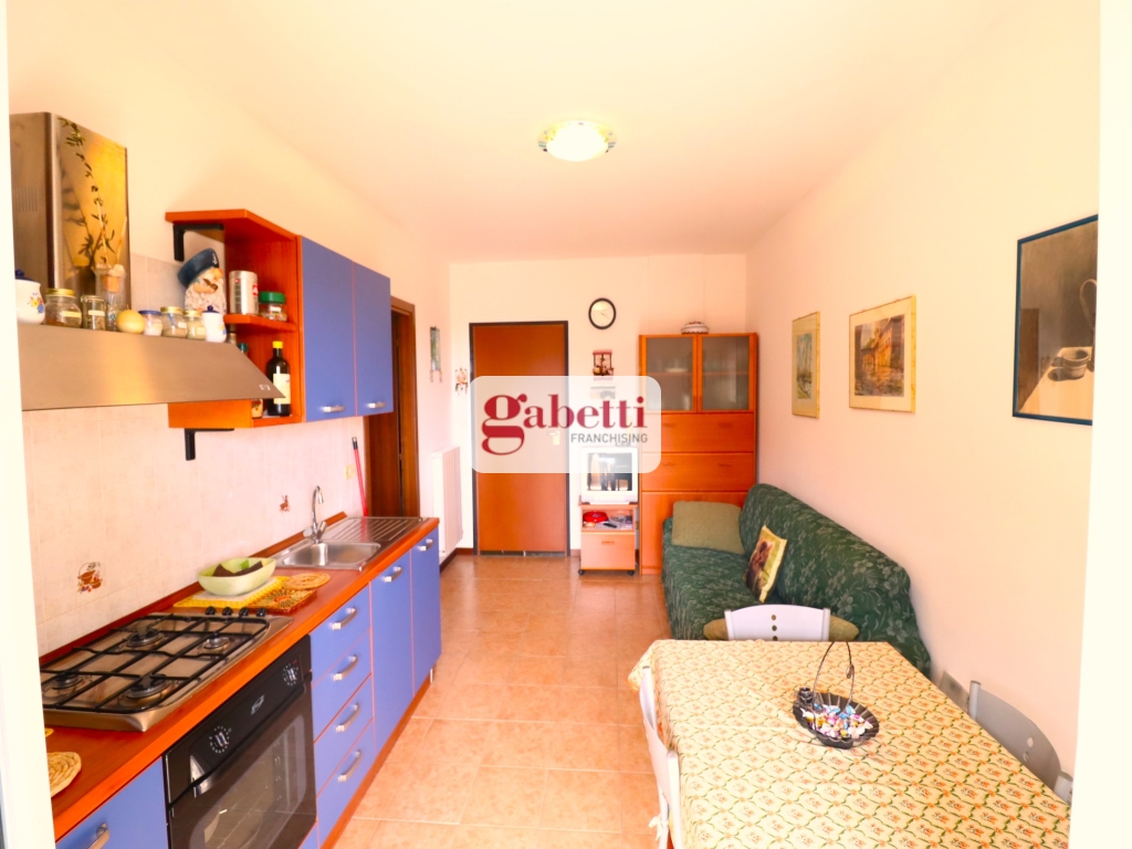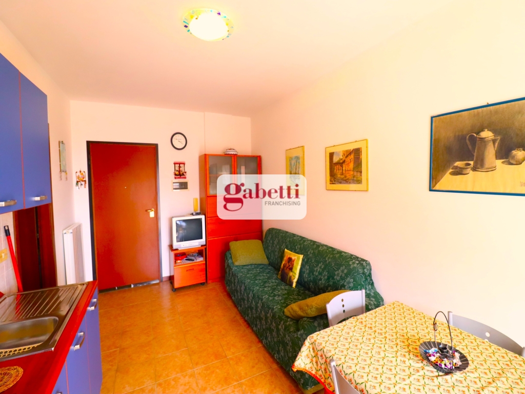 In elegante zona residenziale, accanto al famoso parco divertimenti “Le Caravelle”, bellissimo bilocale composto da: soggiorno con angolo cottura, grande camera matrimoniale (posto per letto matrimoniale, letto singolo o letto a castello, armadio), antibagno/bagno, terrazza esposta a sud con vista mare.